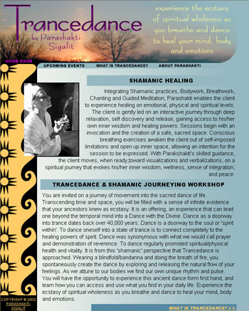 What's New? TRANCEDANCE YOGA, a new site I programed and designed--as of March 31, 2003.